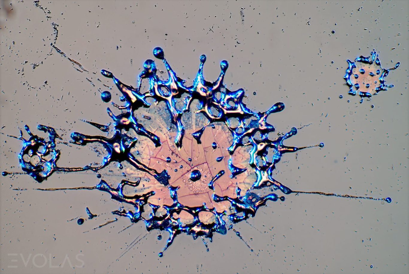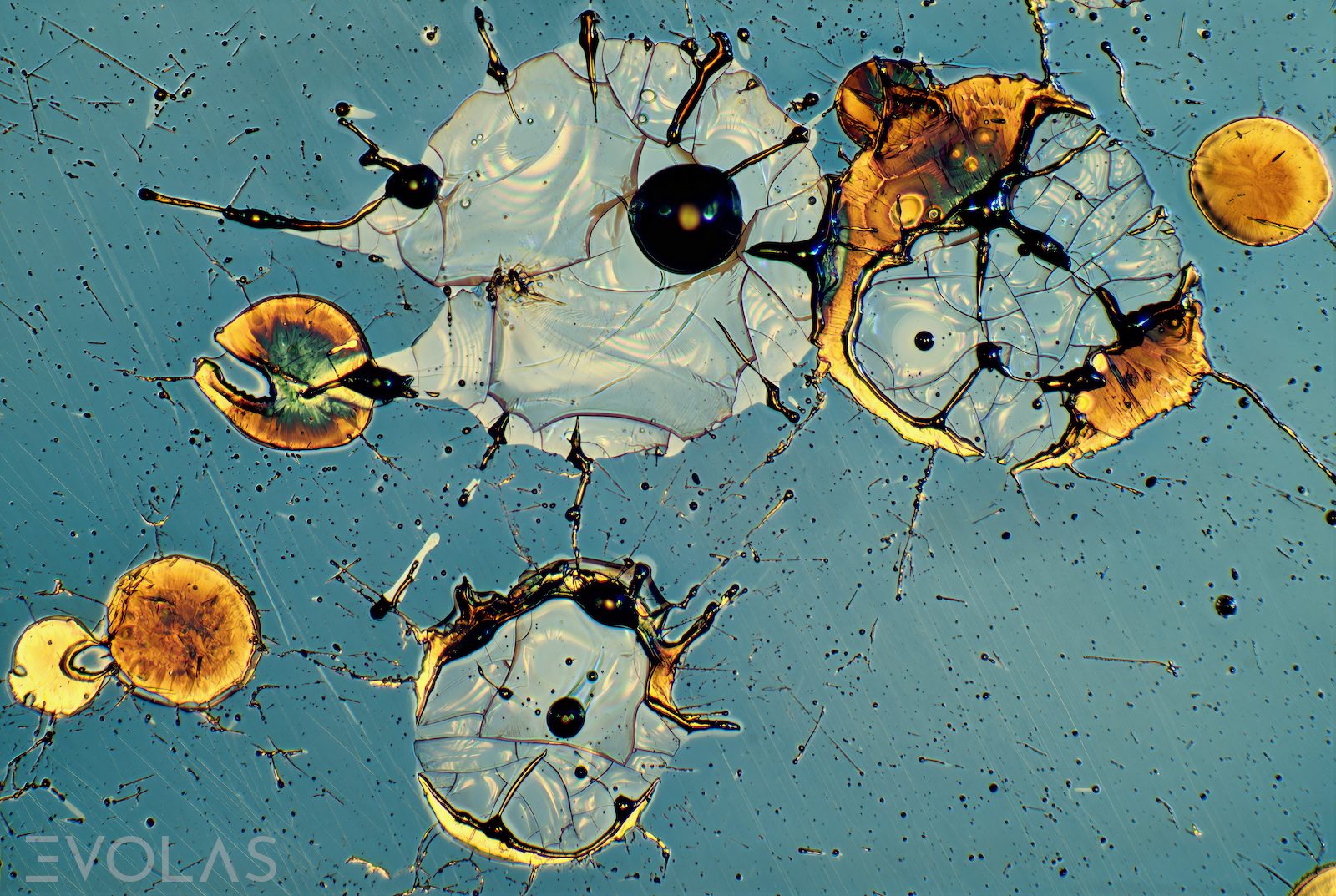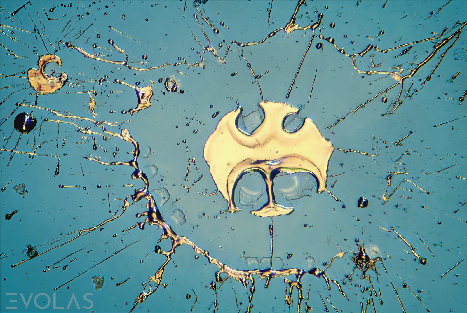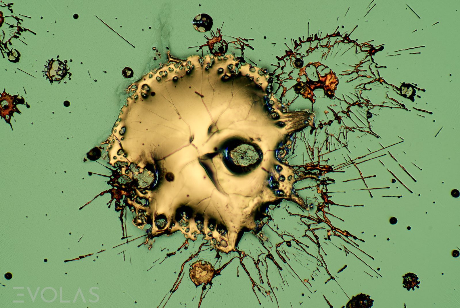 It includes early experimental series and optimization studies conducted at IFSW Stuttgart, selected microscope slides from scientific investigations in the 1990s, as well as motifs from the first EVOLAS production cycle of December 2025.